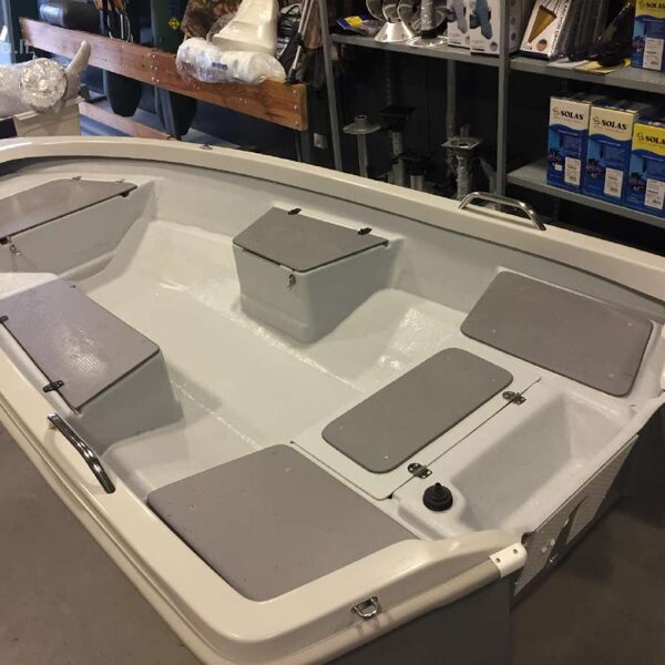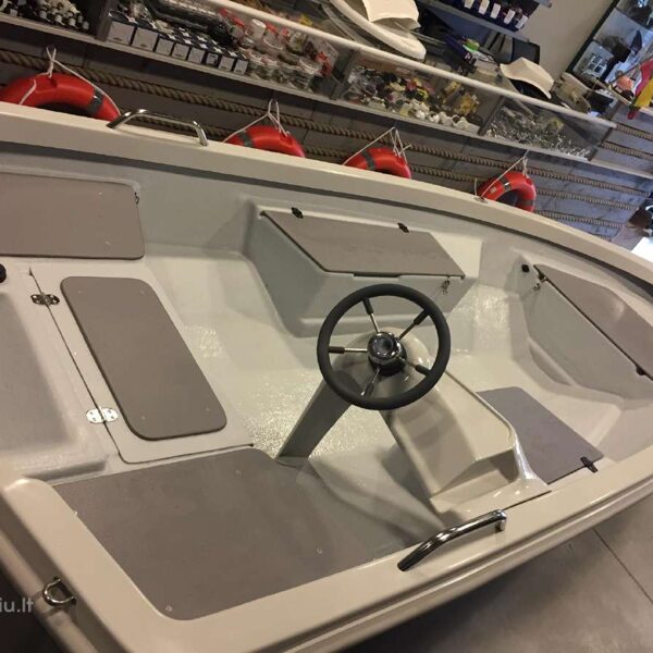Laiva ir pārdomāta ikdienas copēm: plašs klājs, trīs ietilpīgas mantu kastes, nerūsējošā tērauda margas, sānu aizsarglīste, drenāžas sistēma un vieta degvielas tvertnei.